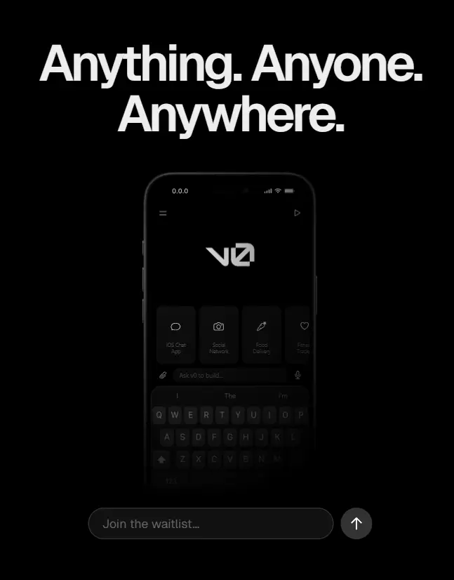Vercel 旗下 v0宣布即将推出 iOS 应用程序,并已正式开放候补名单注册。主打'Anything. Anyone. Anywhere.',目前官网已开放注册通道,佬们可以抢先注册。